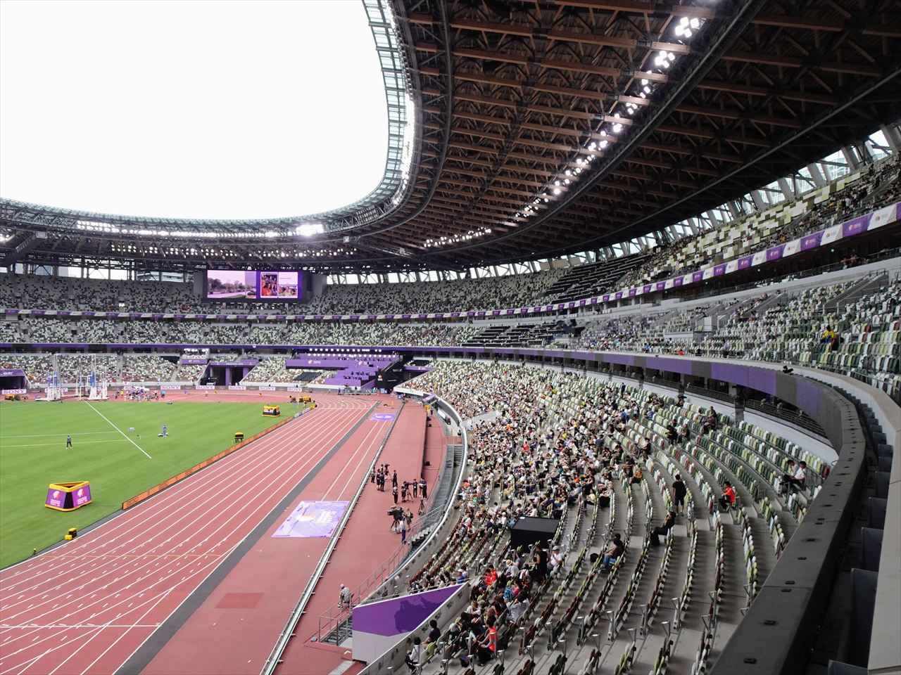 陸上競技場で9レーンある同スタジアムはサッカーやラグビーなどが行われる際はそれなりにフィールドと観客数が離れています。