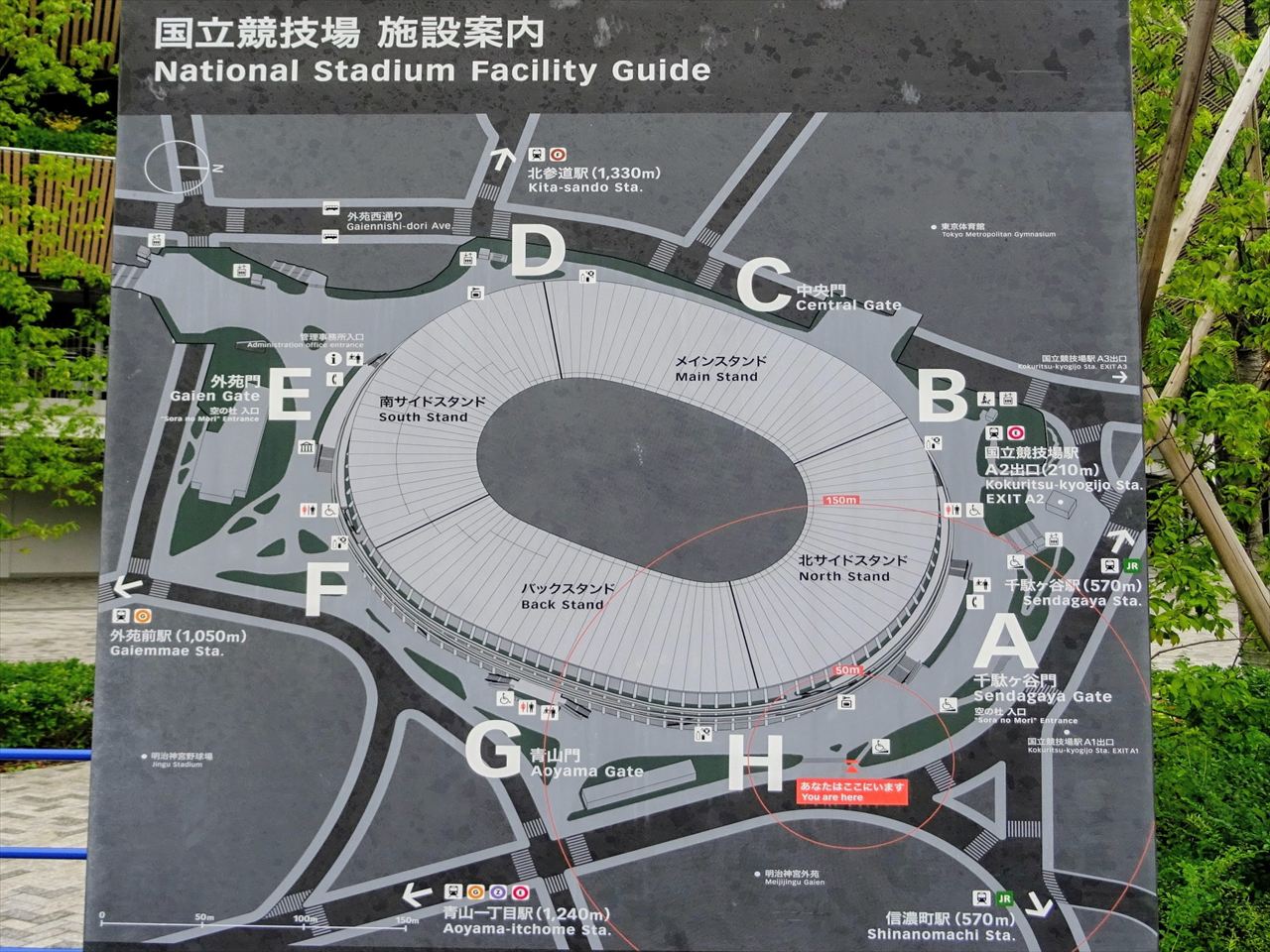 JR総武線「千駄ケ谷駅」と「信濃町駅」、都営大江戸線「国立競技場」、東京メトロ銀座線「外苑前駅」でスタジアムには8ヵ所の入場ゲートがあります。