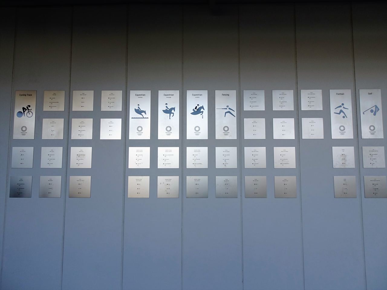スタジアム外周壁面にある953枚の銘板プレートには開催競技の優勝国らメダリストの名が刻まれています。