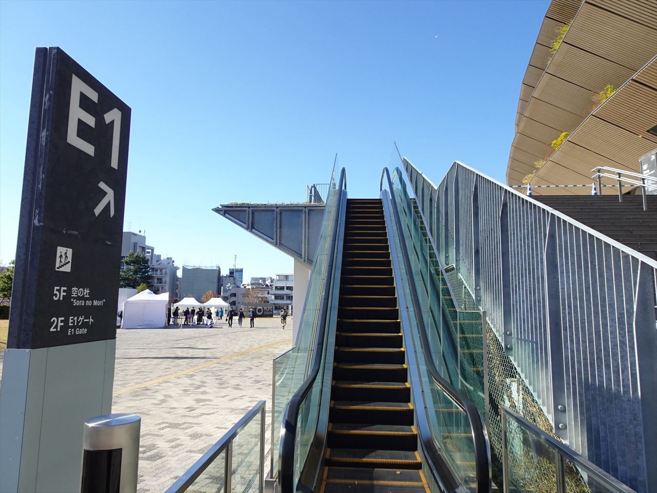 但しスタジアム内にはエスカレーターなく階段のみとなります。