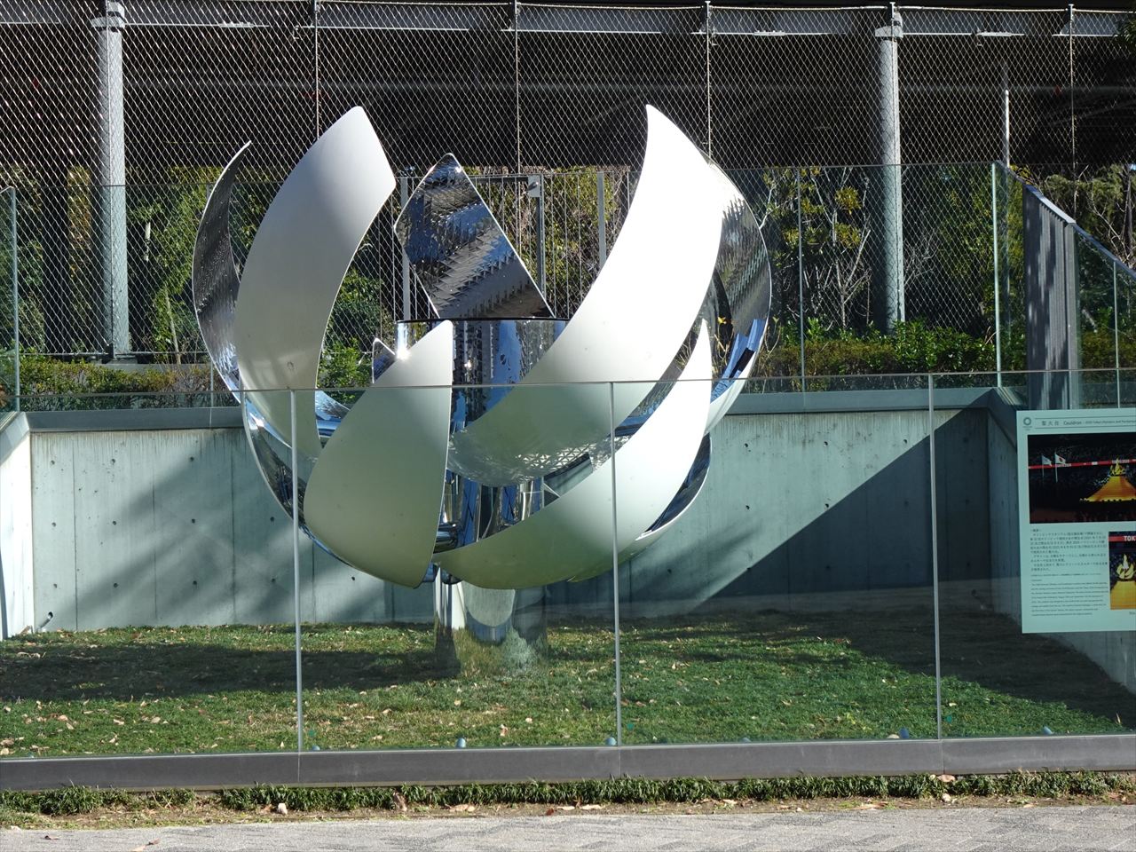 バックスタンドがあるGゲート付近にある1964東京オリンピックの聖火台