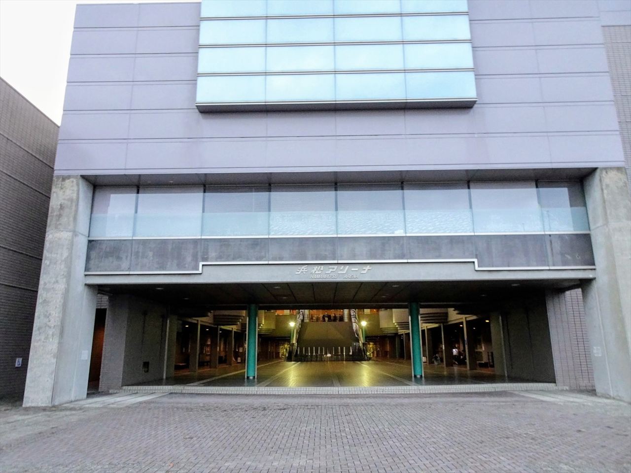 浜松アリーナはJR浜松駅から北東に約4キロの住宅街の一角に1990年開場した最大8,000人収容可能な市民体育館です。
