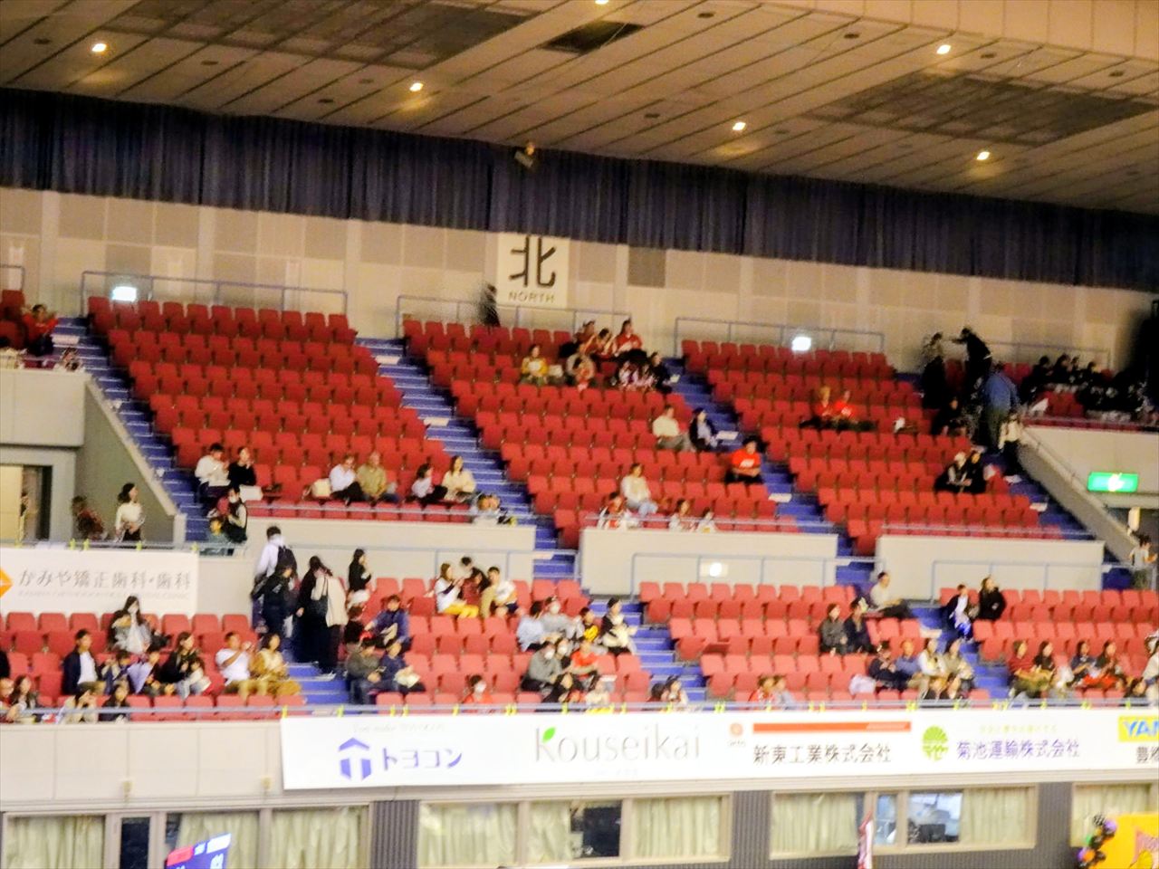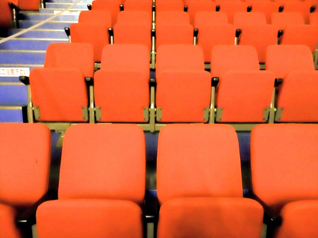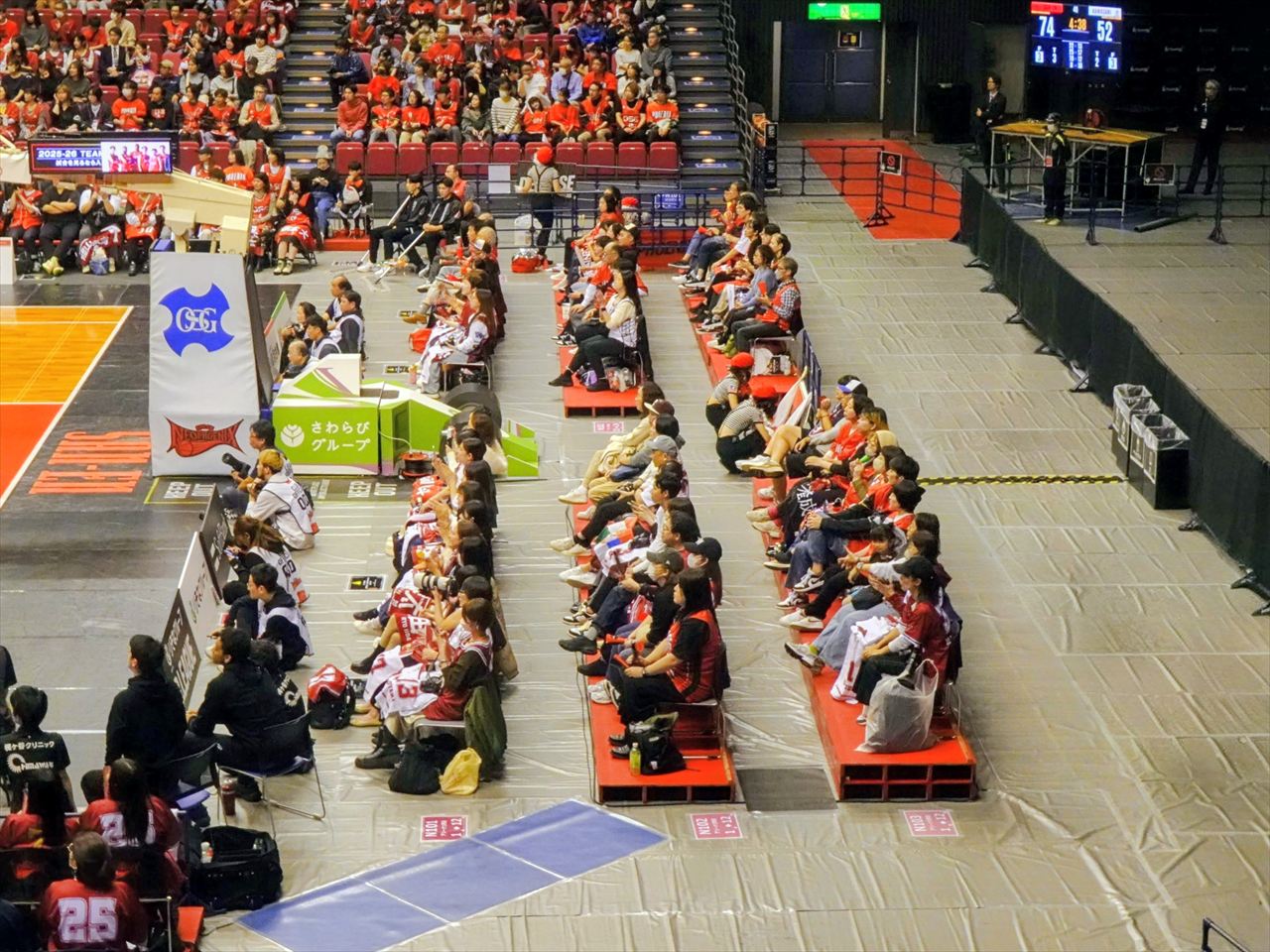 Bリーグ、Vリーグ開催時はコートサイドに2列、コートエンドに3列程度の若干段差のある座席が設置されます。