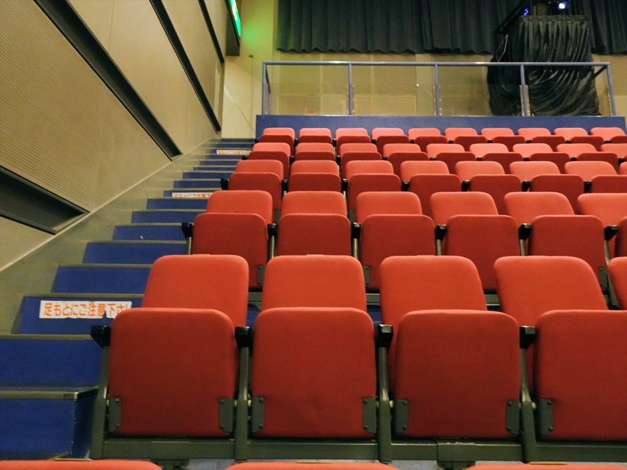 1階可動席、2階スタンド固定席共に背もたれ付きで座面がソフトなイスが設置されています。