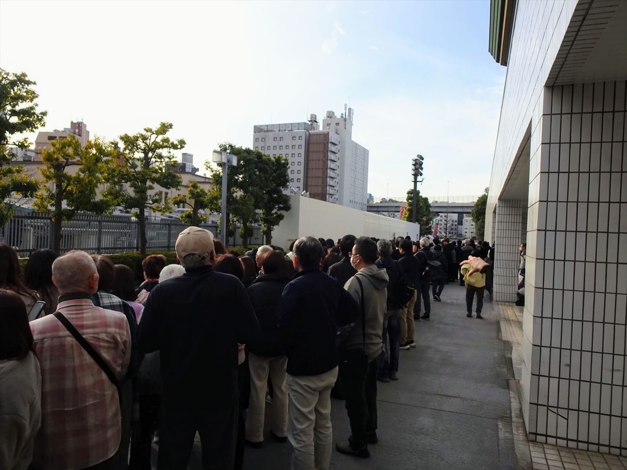 午後になると三役までの関取が次々国技館入りするためファンの人垣が2重3重と増していきます。