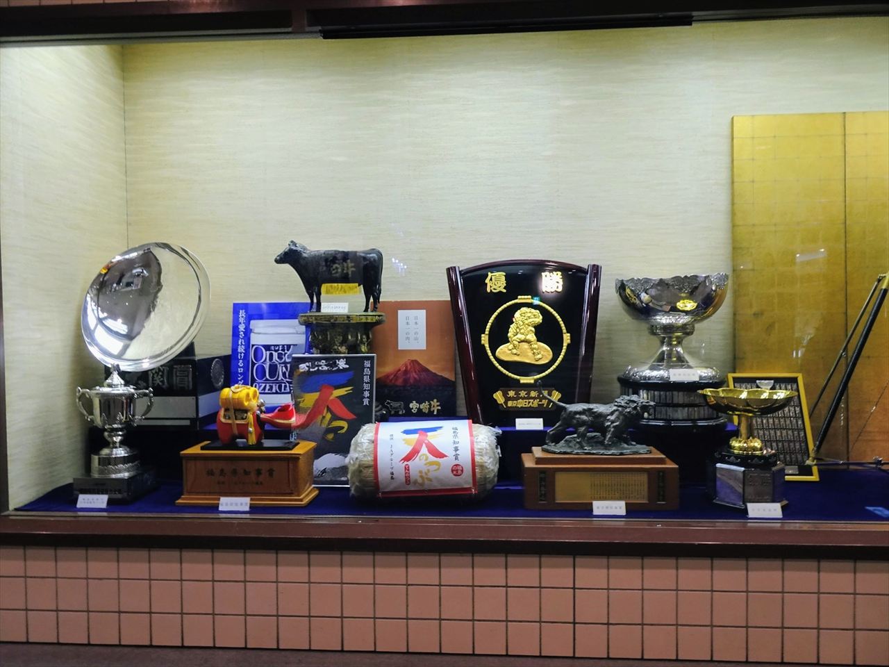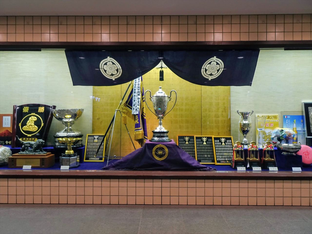 入口正面に優勝賜杯や盾などの展示ギャラリーがあります
