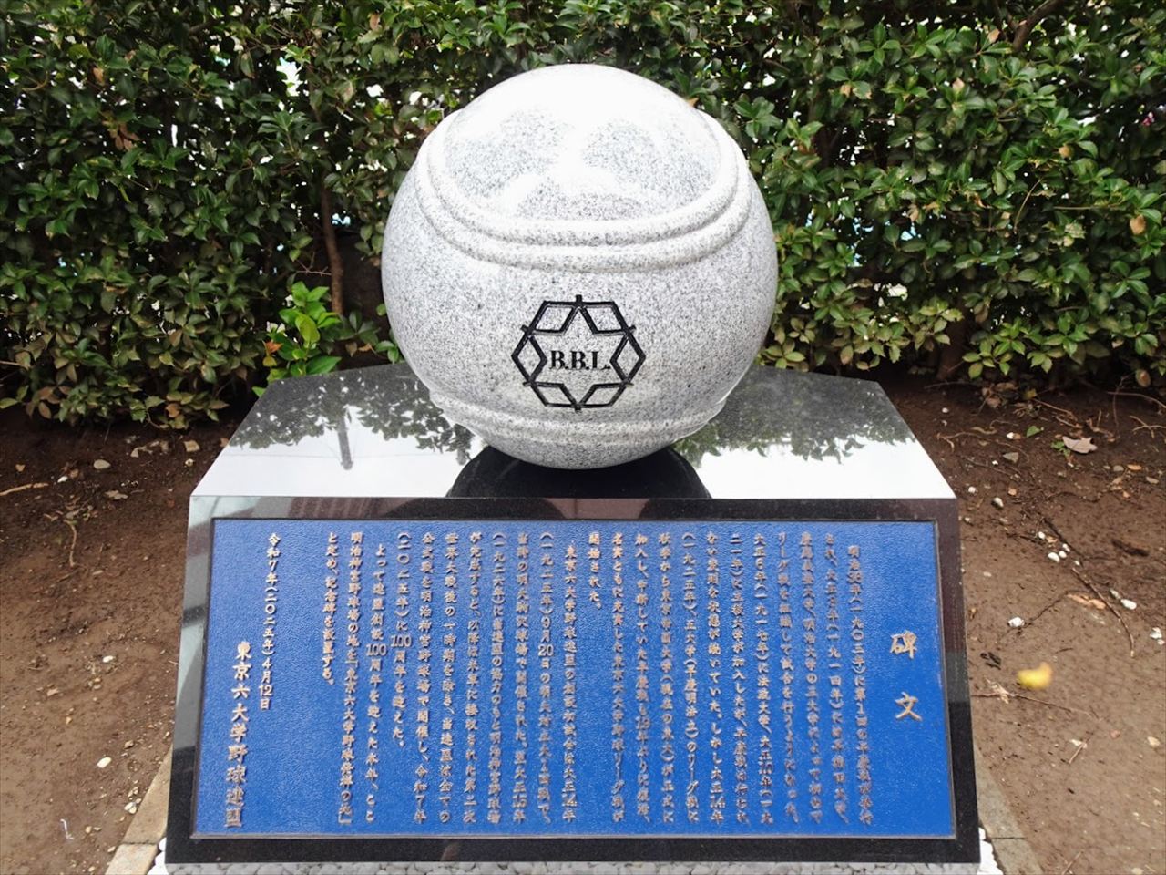 東京六大学野球連盟創設100年を祝う「東京六大学野球発祥の地」記念碑が2025年4月に球場正面入口の8番ゲート付近に設置されました。