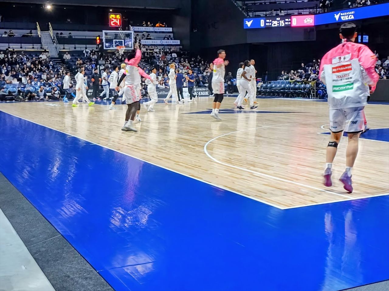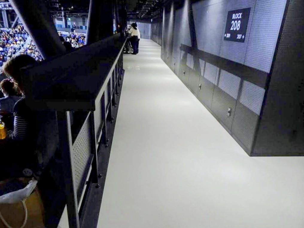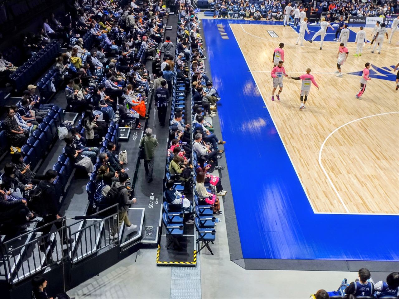 コートサイド席と1階スタンド席の境界線はこのようになっています。