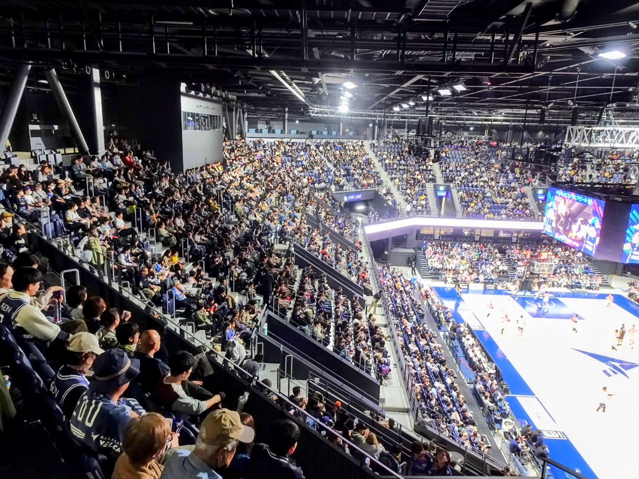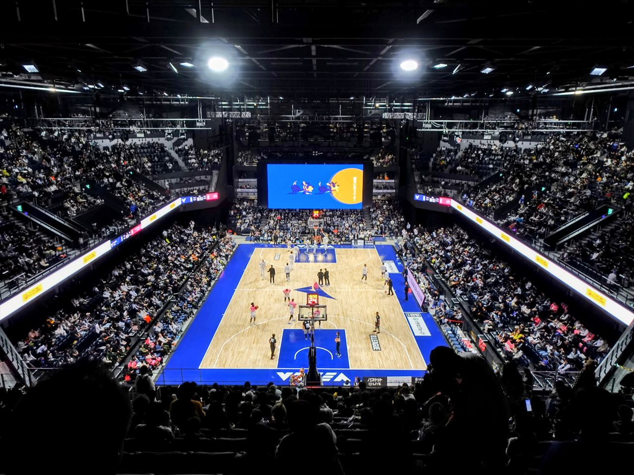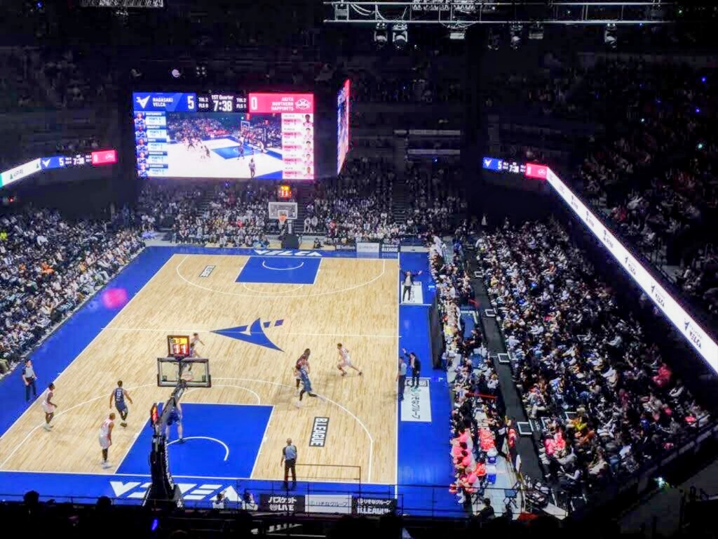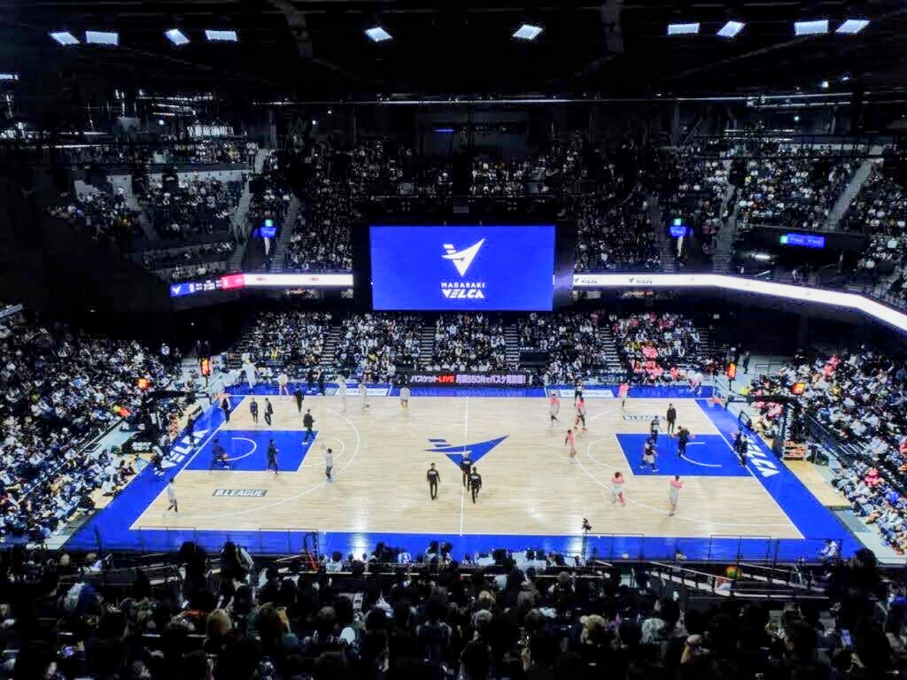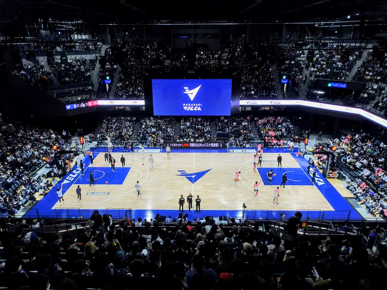 ハピネスアリーナは、長崎駅に程近い長崎スタジアムシティ内に2024年開場、バスケットボール開催時は約6,000人が収容可能な目的アリーナです。