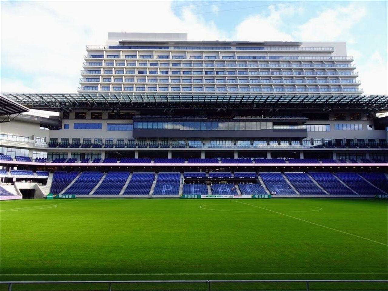 日本初のサッカースタジアムビューホテルで天然温泉やプールなど充実した施設があり243の客室数があります。