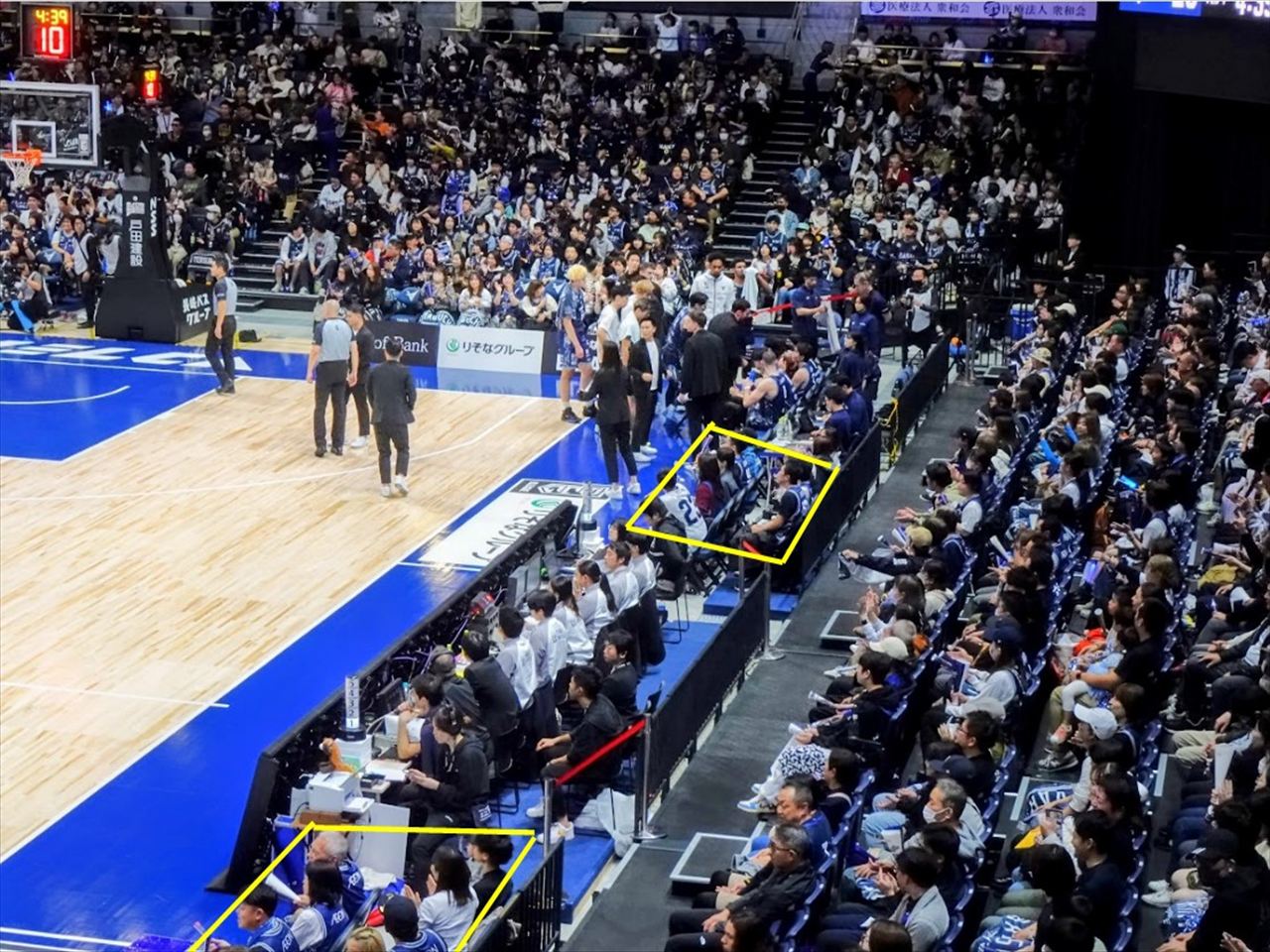 コートサイドベンチ側はベンチ真横(長崎ヴェルカ開催時はプレミアムヴェルカ)に2列×4席がホームとアウェイ側に設置されます。