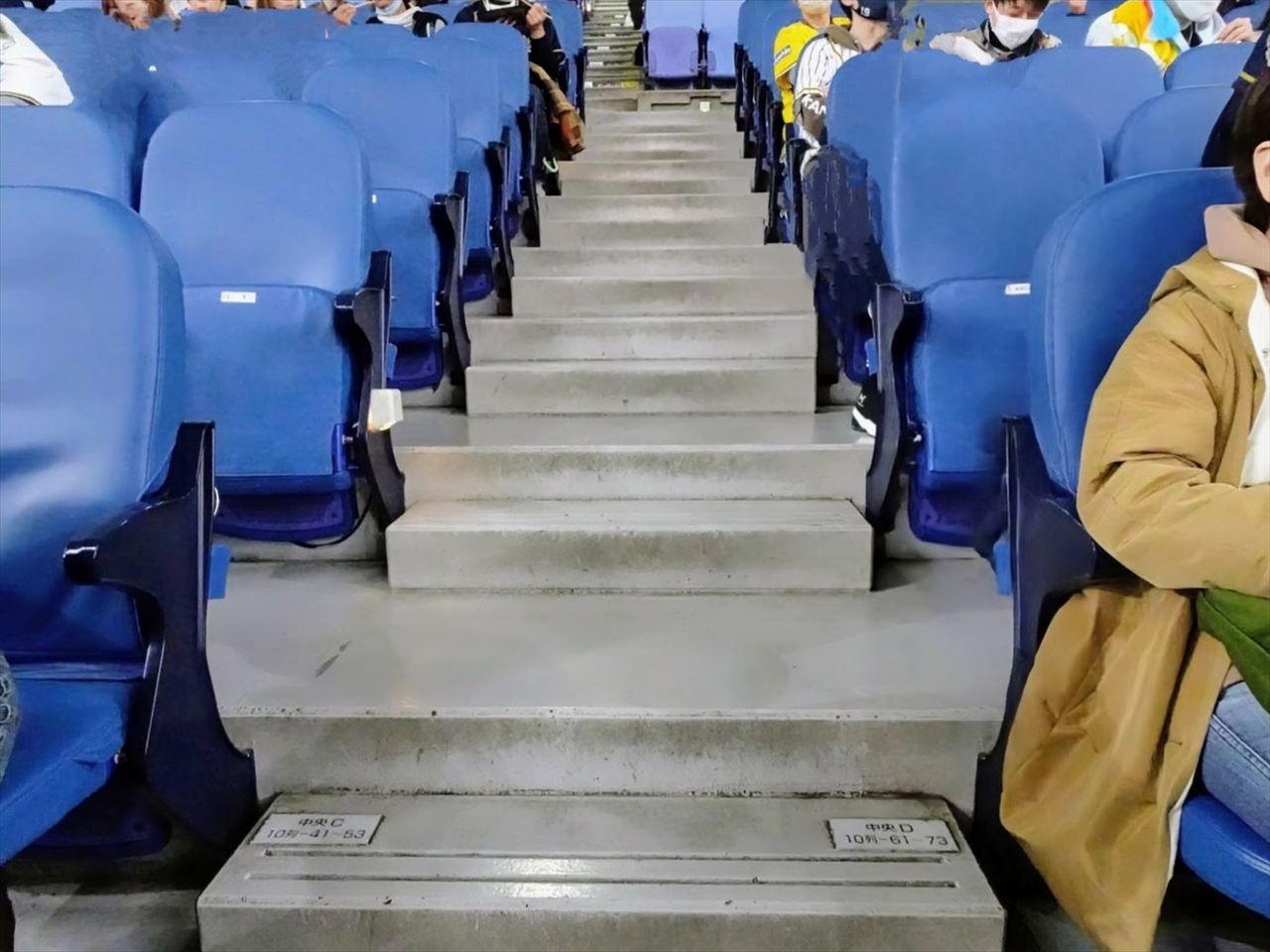内野席前方エリアはグラウンドレベルから始まる座席で最大16列(A列~P列)となっています。