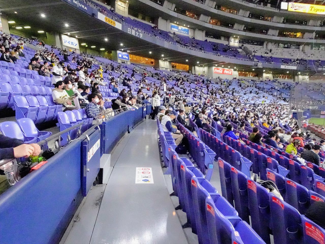 京セラドームの座席は全て背もたれが付いています。