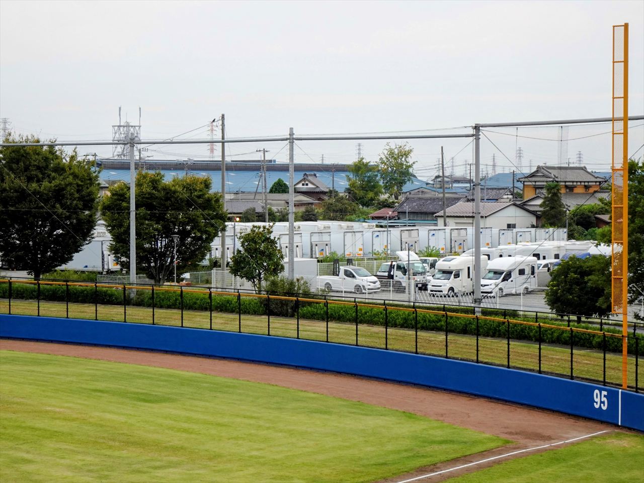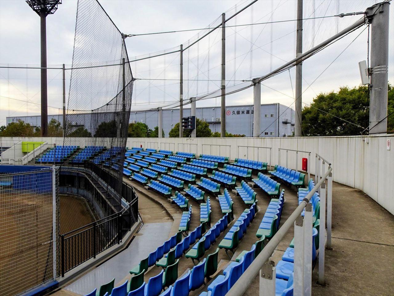 やまぶきスタジアムは一層のスタンドでバックネット裏に574人、内野スタンドに757人、外野芝生席に2,000人の3,337人が収容人員とされています。