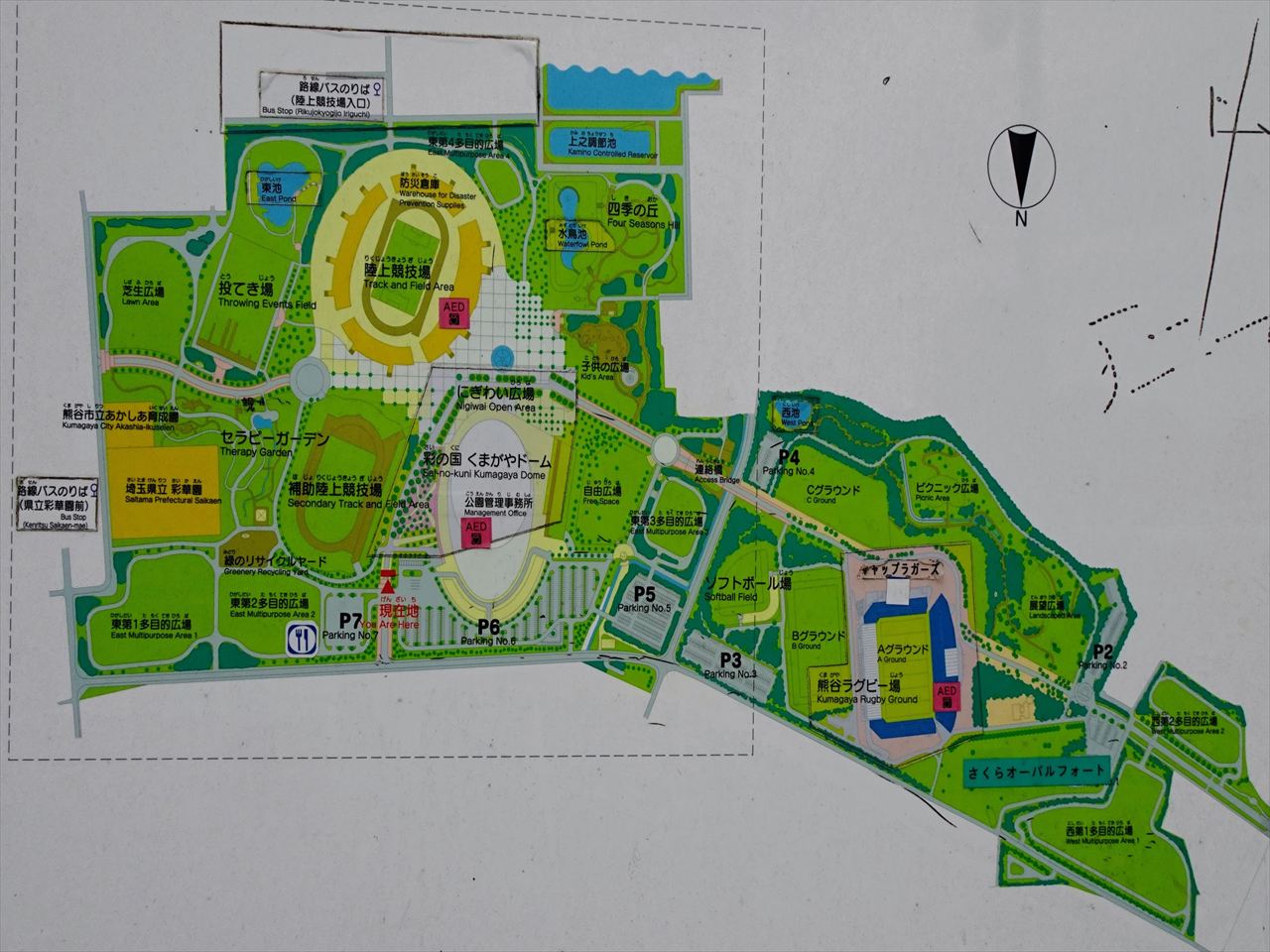 公園内8ヵ所の駐車場の中で熊谷ラグビー場Bグラウンドに最も近いのはP3駐車場(310台収容)になります。