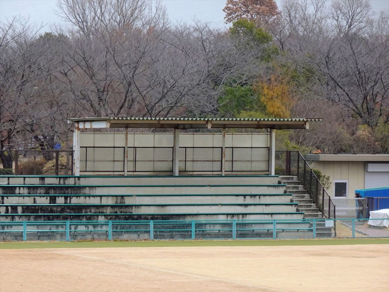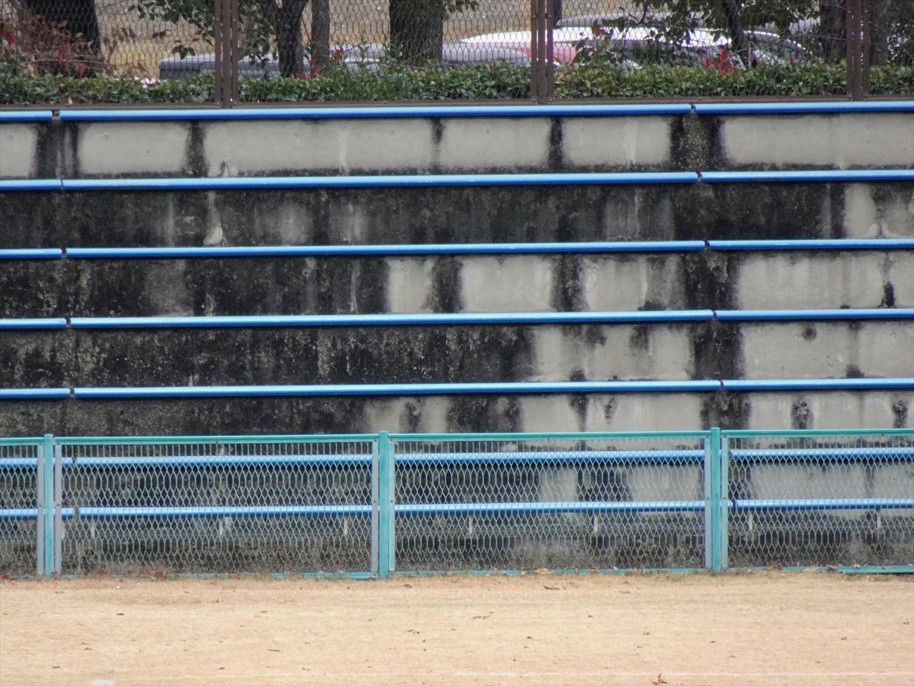 座席は両サイドに3~6段のベンチシートがありゴールエンドは芝生席になっています。