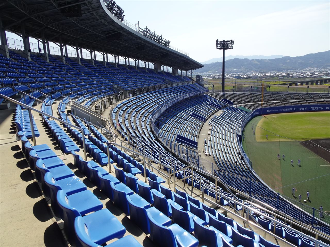 坊っちゃんスタジアム(松山中央公園野球場)は、愛媛県松山中央公園に2000年開場(2012・2022年改修)の3万人収容の市営球場です。
