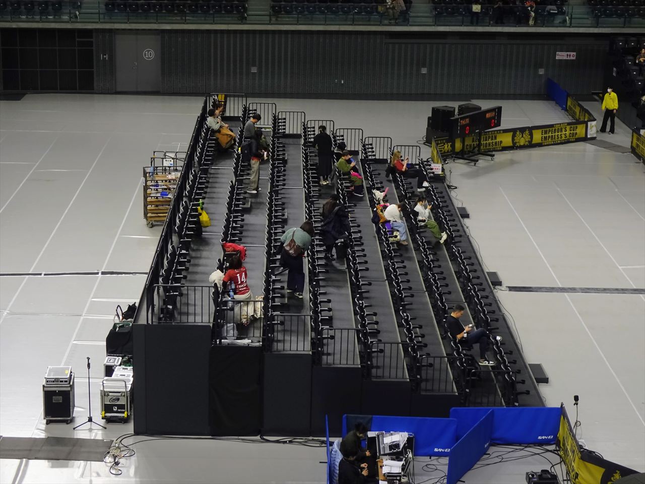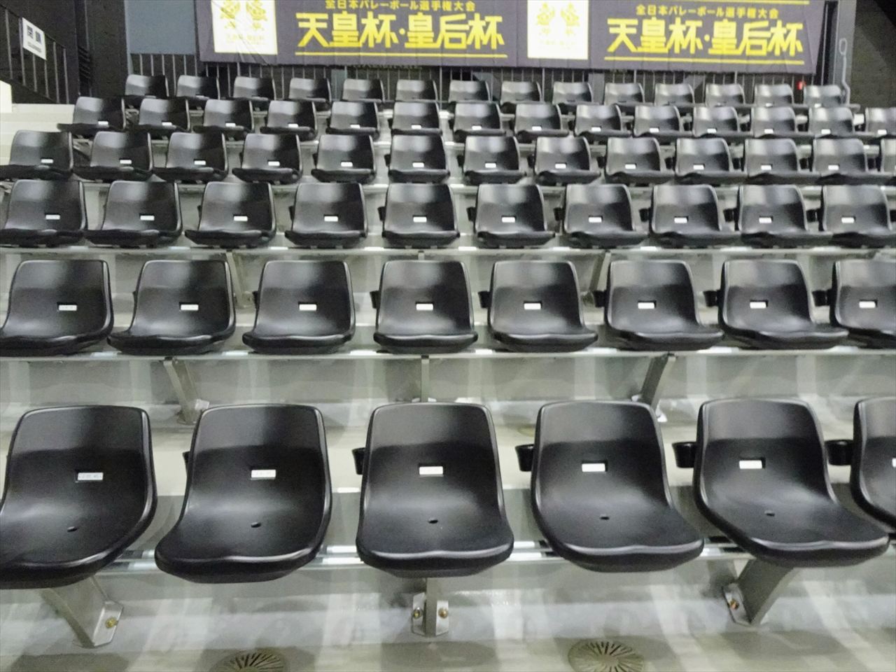 座席はパイプ椅子が基本ですが、Bリーグ公式戦などでは最前列がクッション性のある特別仕様のシートになっている事もあります。
