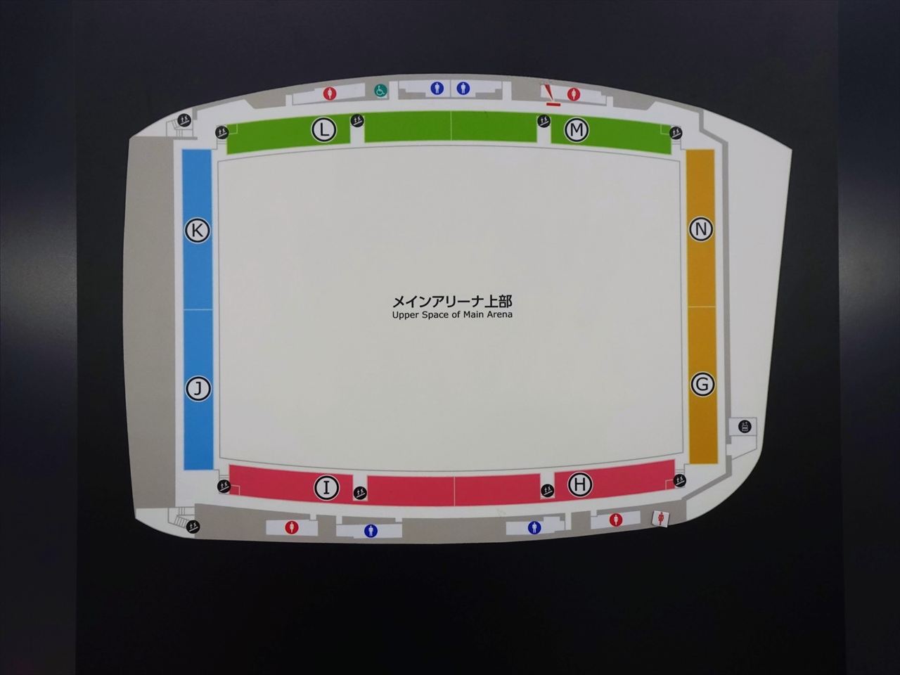 Bリーグ開催時はコートから近い順にフロアエリア(コートサイド・エンド)、アリーナ(コートレベルに設置される仮設席)、3階スタンド席、4階スタンド席が座席構成になります。