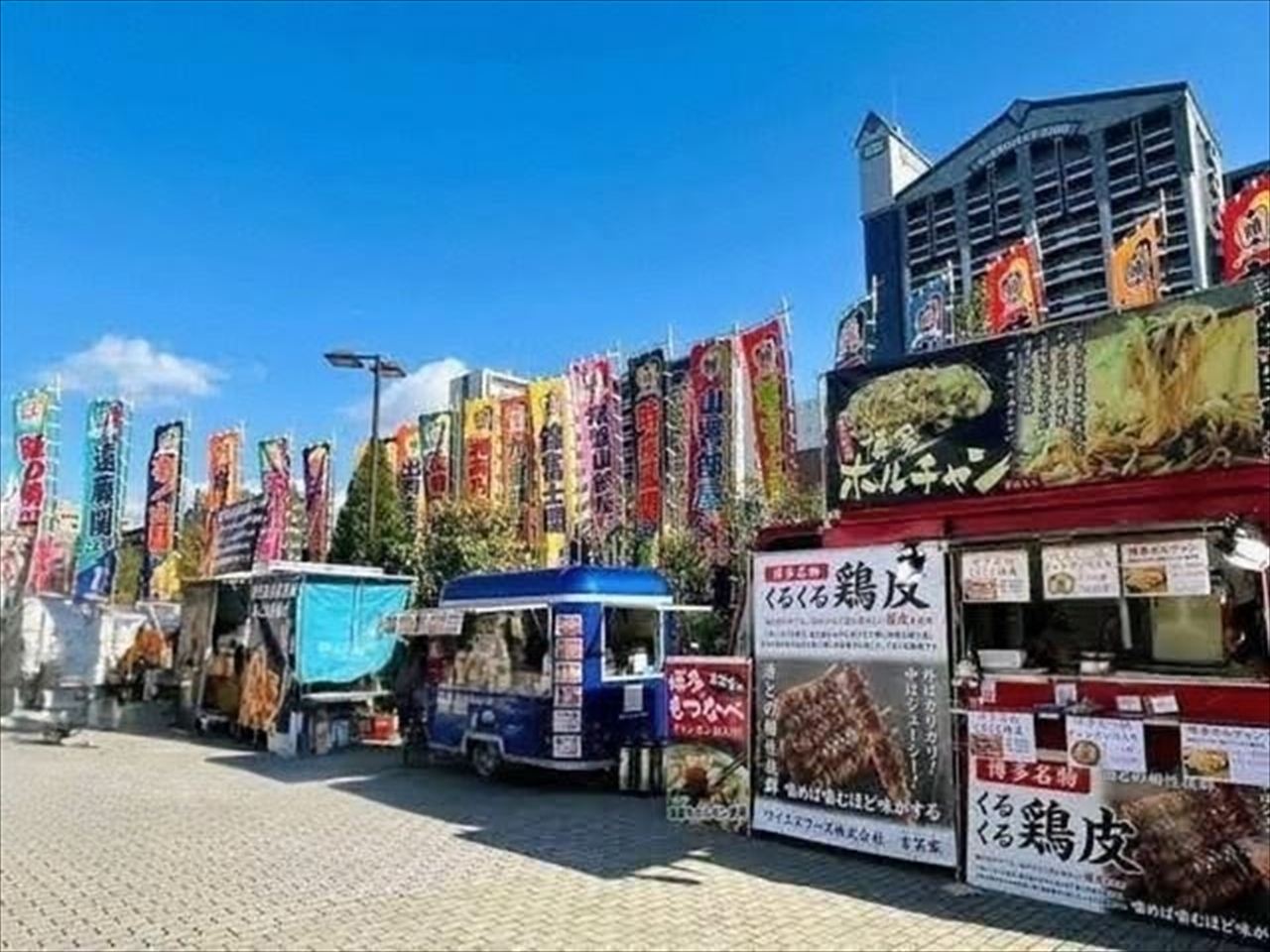 また東京や大阪・名古屋にはない特徴が会場前の広場に多くのキッチンカーが並びちゃんこ鍋や福岡ならではのご当地グルメが楽しめます。
