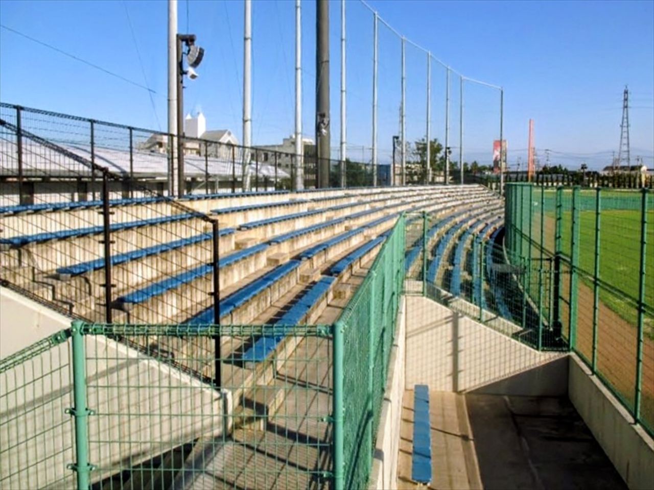 今治市営球場はメインスタンド(バックネット裏)の中段以降が屋根に覆われています。
