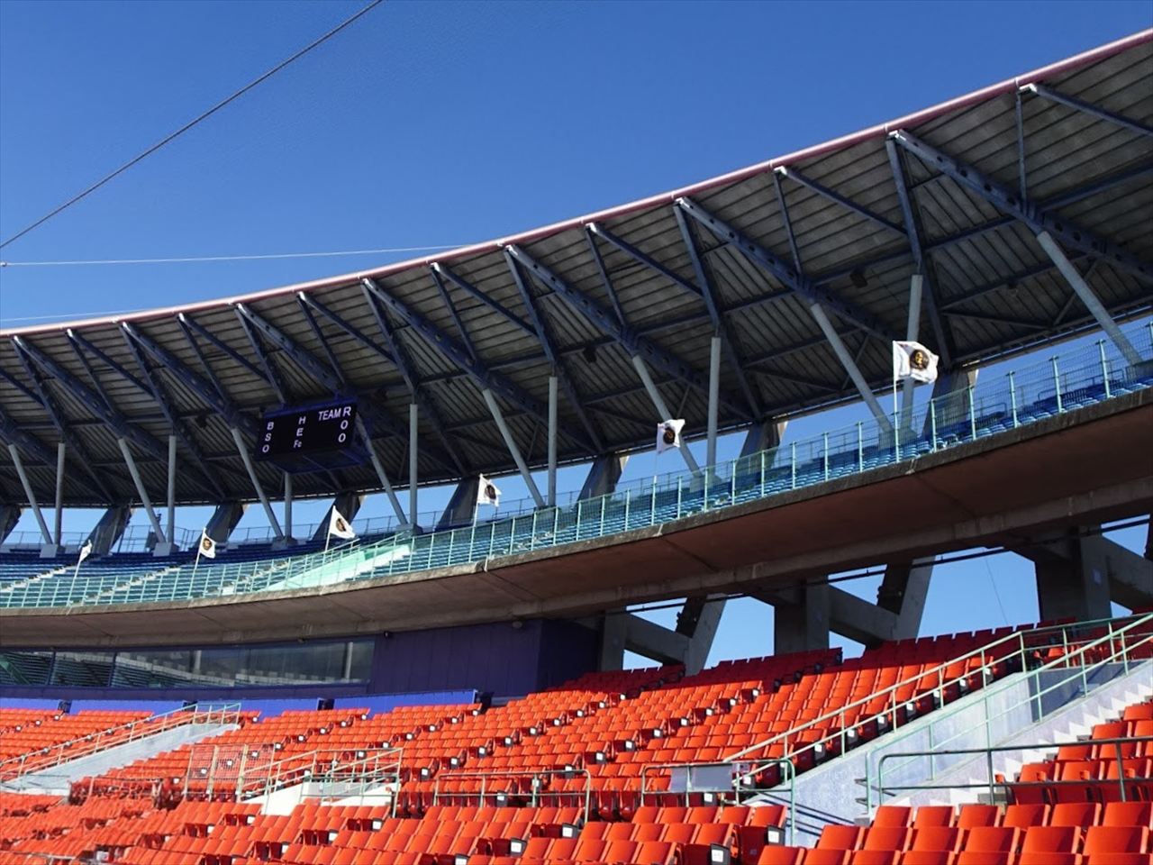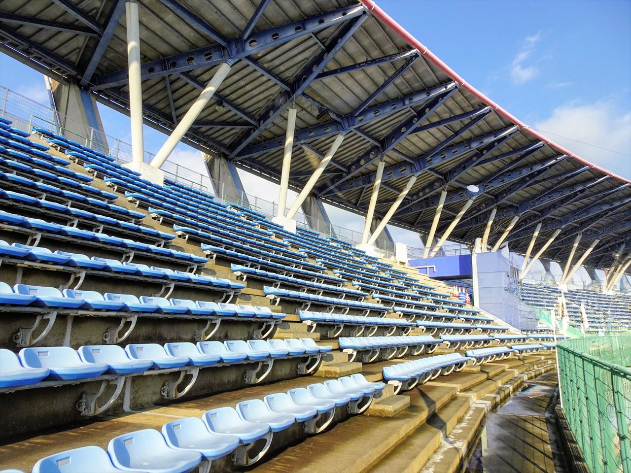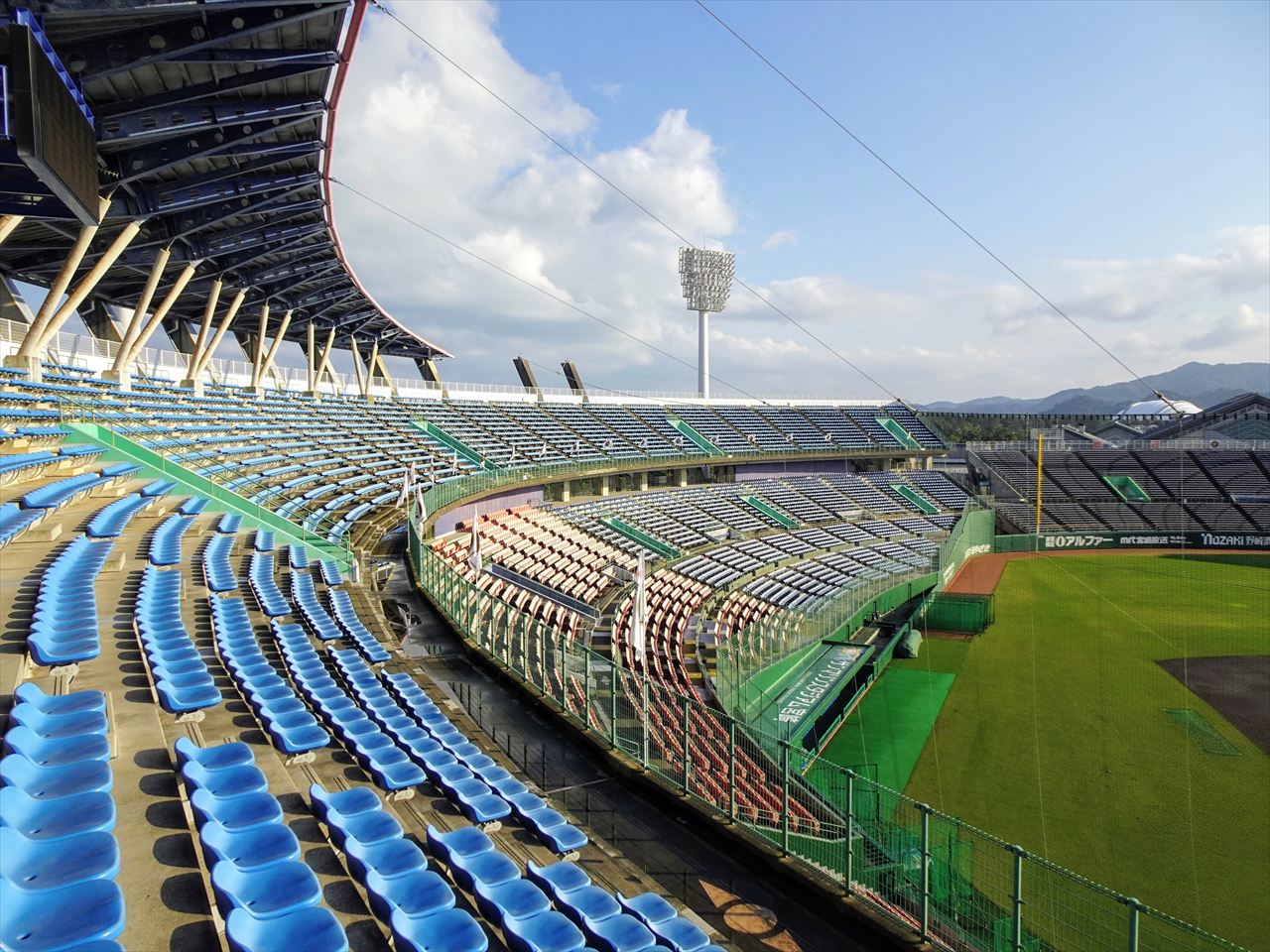 サンマリンスタジアムのスタンドは2層構造になっていて、屋根はおおまかに2階席のバックネット裏正面が中段から最上段に掛けて最も広く、2階席の1・3塁側ベース付近は最上段から2~3列程度が覆われています。