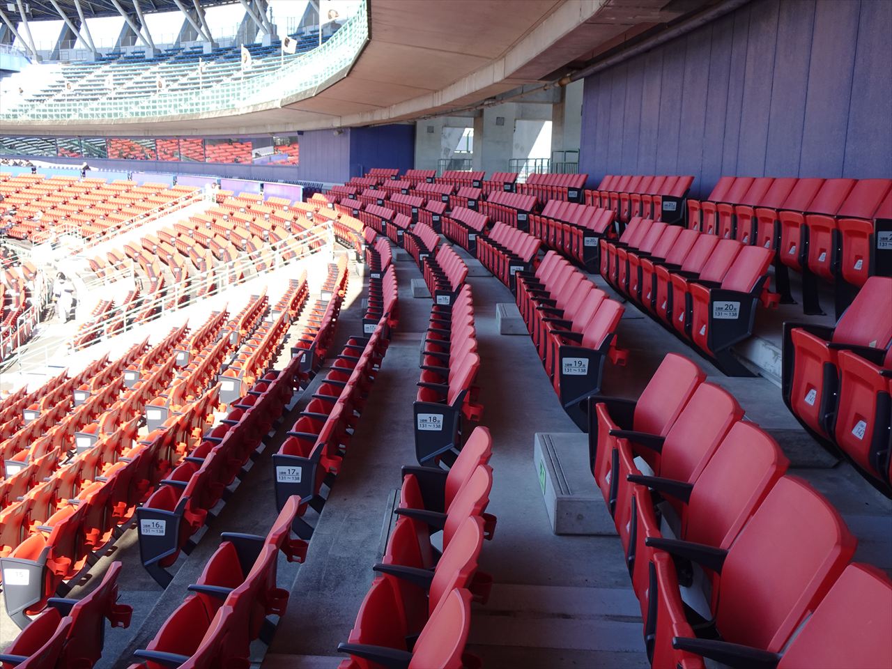 座席番号1番から40番付近は5列目前後から屋根に覆われる最も広いエリア