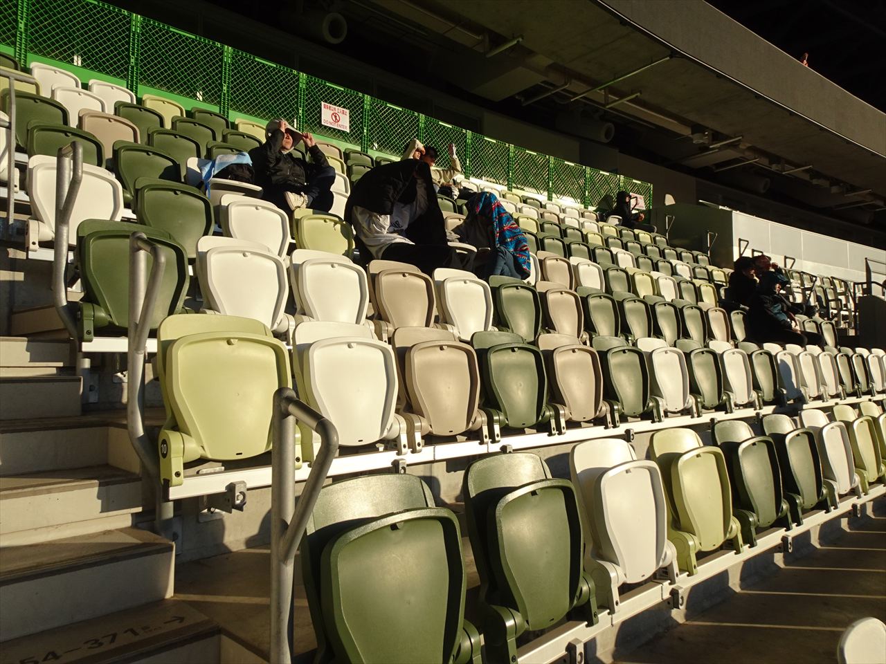 例えば北または北西からやや強めの風が吹く雨天時は、1階南サイドスタンド(サッカー開催時ビジターゴール裏)のメインスタンド寄り10列目付近まで雨にあたる可能性があります。