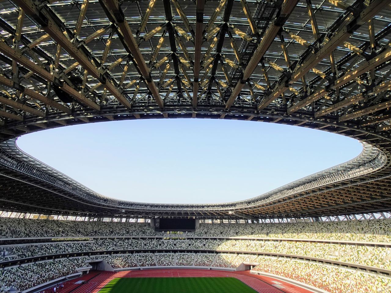 MUFGスタジアム(国立競技場)は国内スタジアムでは最大級の約60メートルの大屋根構造で360度覆われています。