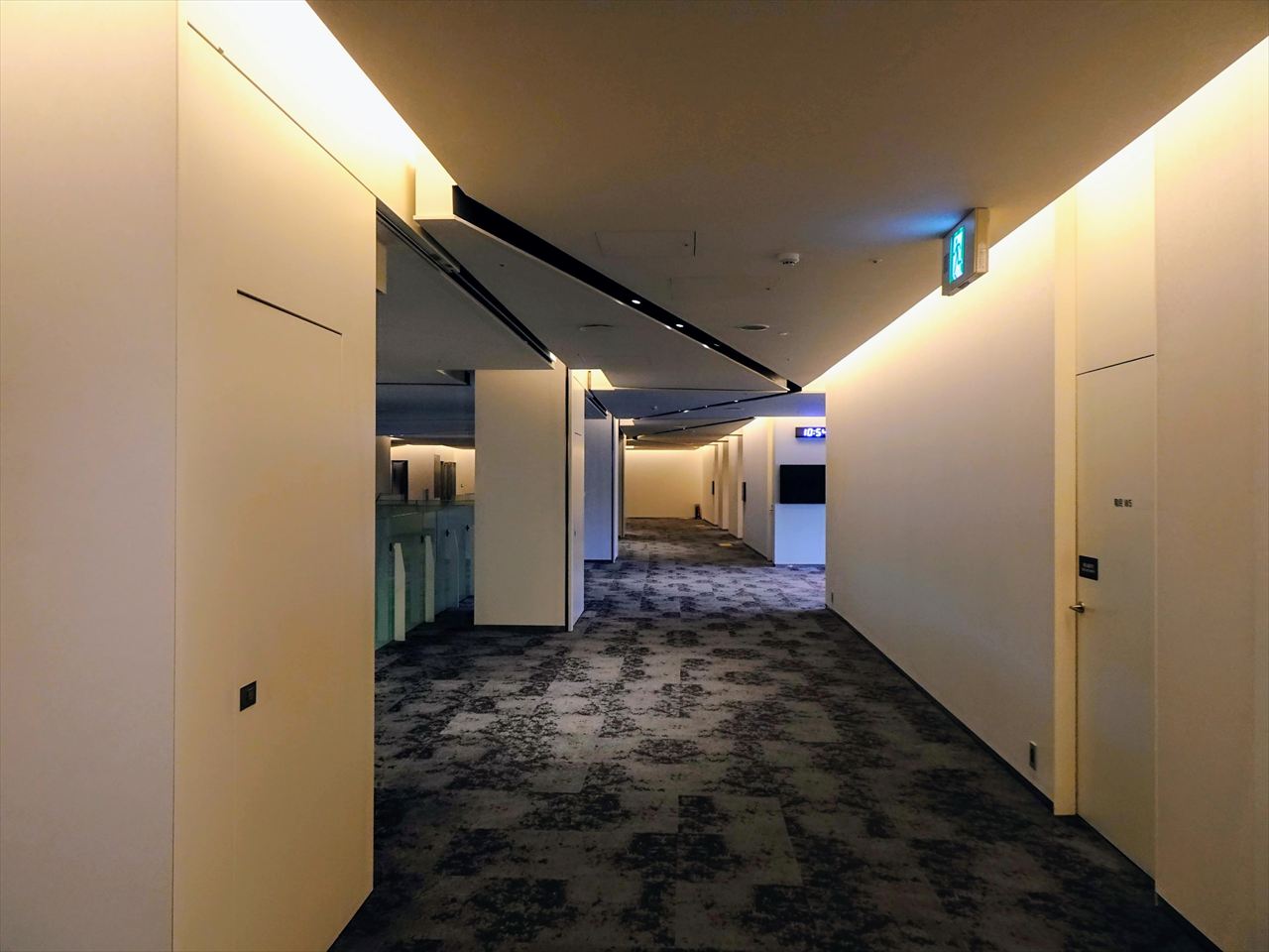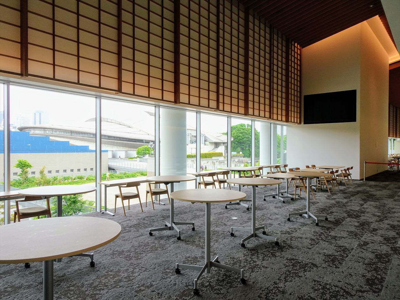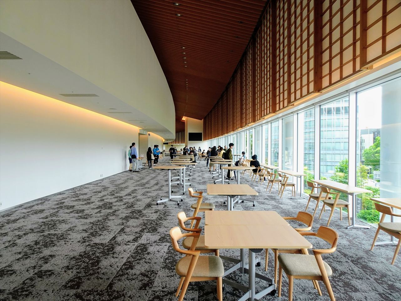 ラウンジの広さはテニスコート約3面分で立食であれば最大500名が入れる空間になります。