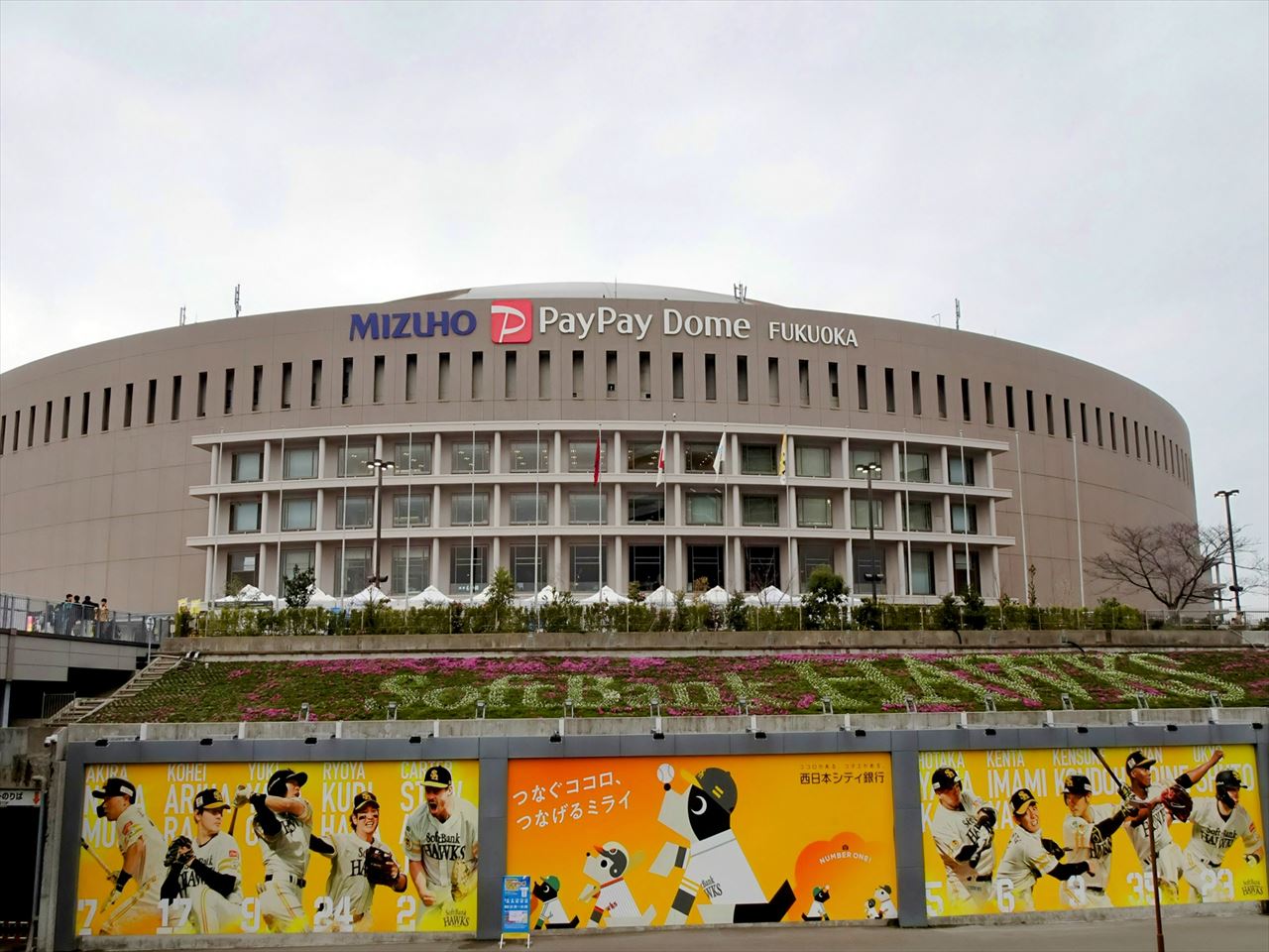 みずほPayPayドーム福岡(福岡ドーム)は、博多駅から西に約6キロのシーサイドももち海浜公園近くに1993年にオープンした開閉式多目的ドーム球場で約4万人収容の大きさでソフトバンクホークスの公式戦、コンサート、プロレスなどが開催されています。