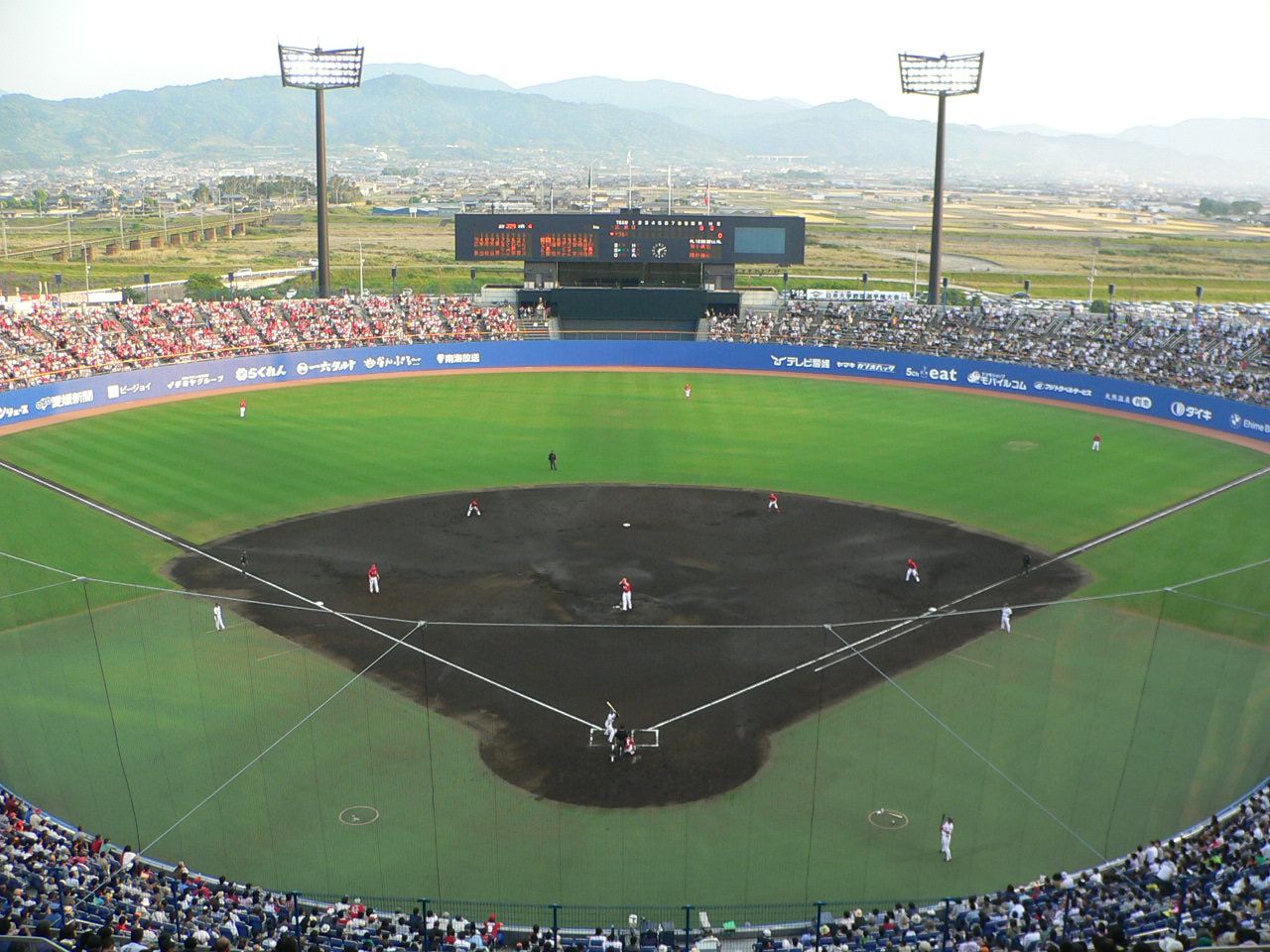 松山中央公園野球場(坊っちゃんスタジアム)は、日本野球発祥の地とも言われており、愛媛県松山市の松山中央公園にある野球場です。地方球場では最多となる3度のプロ野球オールスターゲームが開催された会場で、その記録は球場正面にある『の・ホール ミュージアム』で楽しむ事ができます。ヤクルトスワローズ『古田敦也選手』が2005年に同球場で2000本安打を達成しその功績は球場各所に飾られています。