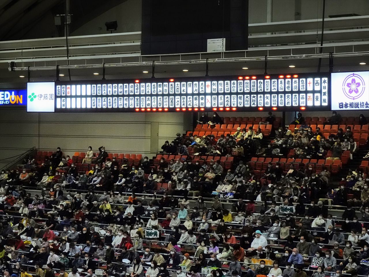 大阪場所の電光掲示板は向正面のみに設置されています。