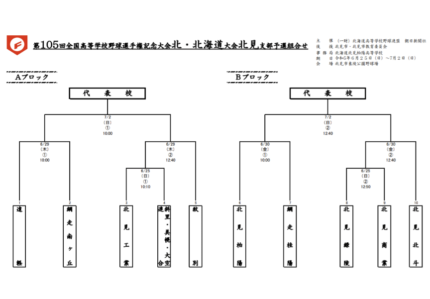 第105回全国高等学校野球選手権北北海道大会は73チームが6月24日より支部予選を行い、7月13日より旭川スタルヒン球場で16チームによる本戦行われます。決勝は今年新設されたエスコンフィールドHOKKAIDOで行われクラーク国際が7年ぶり2回目の甲子園大会出場を決めました。