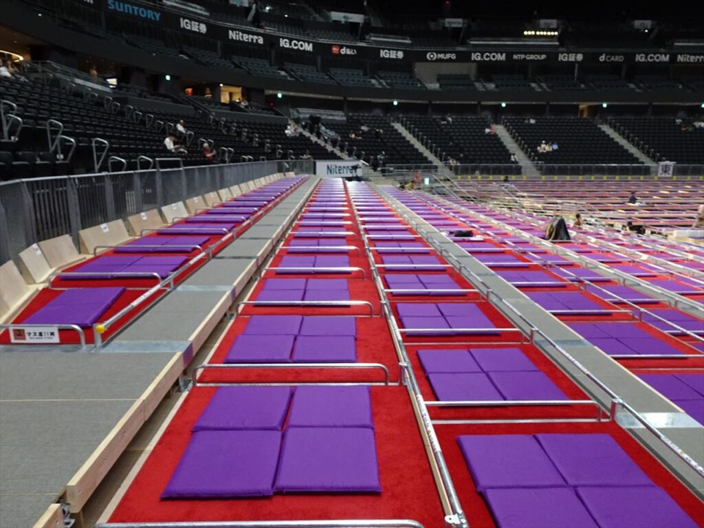 升席は日本特有の座席でIGアリーナは他の会場より若干広く140センチ×140センチの空間に4人が座って観戦するのが基本スタイルです。