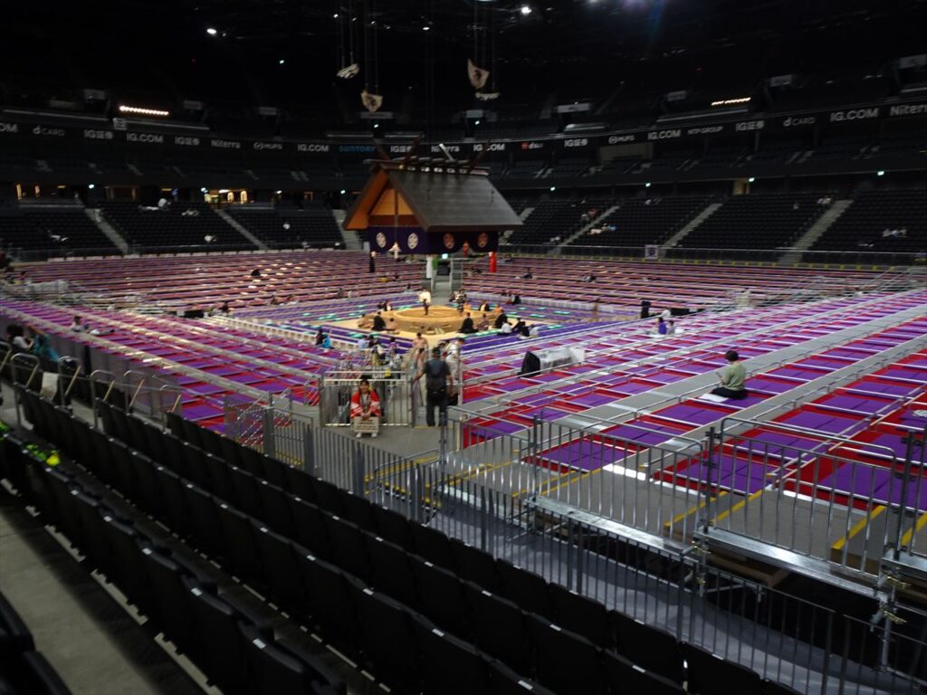 同アリーナは最新鋭の設備を駆使した会場で従来の四角い形状ではなくオーバル型と馬蹄型を融合した延べ床面積は6万3000平方メートル( 両国国技館は3万5,700平方メートル)の広さを誇り、他の場所とは異なった雰囲気で観戦を楽しむ事が出来ます。