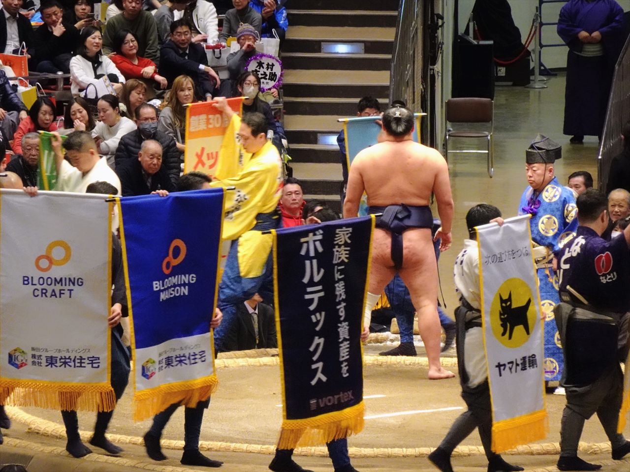 今場所の懸賞総本数は過去最高の3,469本(2億814万円)となり令和7年9月場所の3,108本(1億8,648万円)を大きく更新しました。